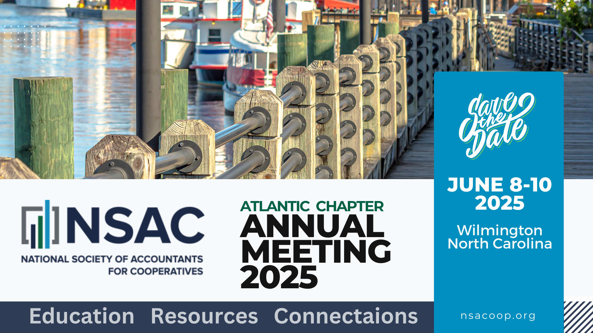 Join us for the NSAC Atlantic Chapter 2025 Annual Meeting in the beautiful coastal city of Wilmington, North Carolina, June 8-10, 2025! This event is tailored for tax and accounting professionals in the cooperative industry, offering 10 hours of CPE credit to help you stay ahead of the latest trends, along with invaluable networking opportunities to connect with peers and industry leaders. Attendees will also enjoy a special outing to explore Wilmington’s unique charm, known for its historic riverfront downtown, its stunning beaches. and vibrant local culture.